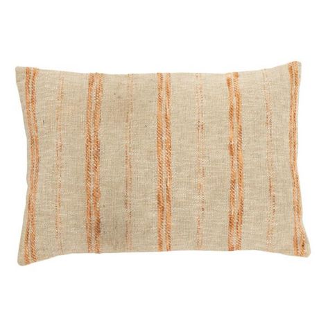 Informations Techniques : Dimensions : L. 60 x l. 40 x H. 15 cm Matières : 60% Lin & 40% Coton Spécificités : Déco & Pratique Coussin rectangulaire Motifs lignes Déhoussable Poids : 0,76 kg Couleur : Beige & Orange