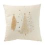Informations Techniques : Dimensions : L. 45 x l. 45 x H. 12 cm Matière : 100% Coton Spécificités : Pratique & Tendance Coussin déco Motif cousu Design sapins de Noël Déhoussable Lavage à sec Forme carrée Poids : 0,65 kg Couleur : Blanc & Or