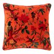 Coussin Déco en Velours Oiseaux Fleurs 45x45cm Orange