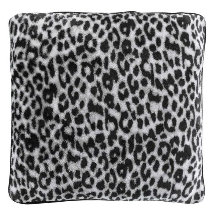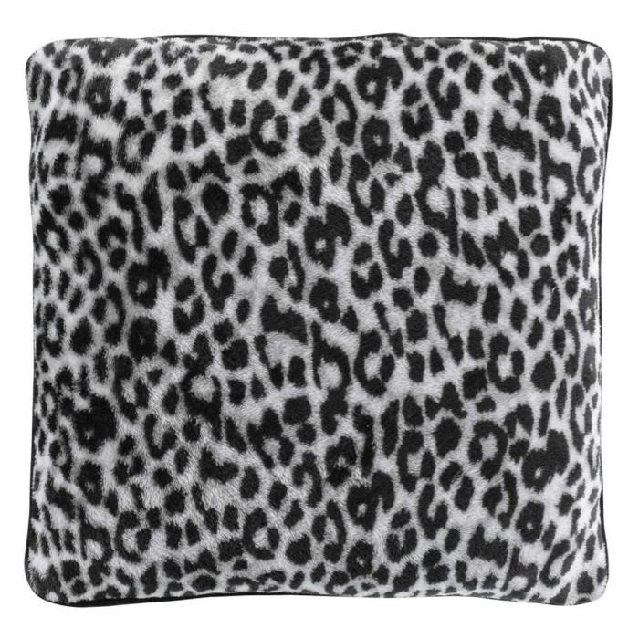 Coussin Déco Flanelle Léopard 40x40cm Gris