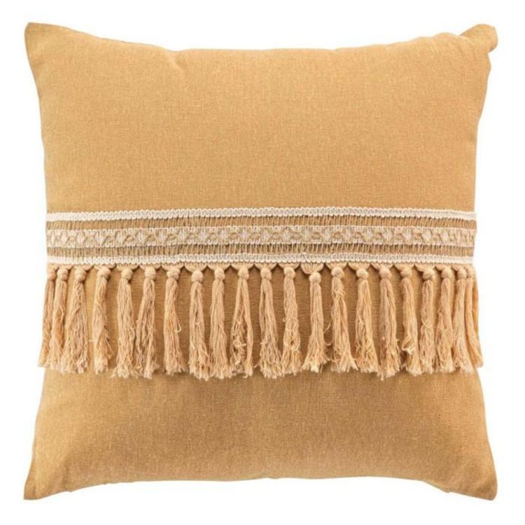 Coussin Déco Franges Janara 45x45cm Ocre
