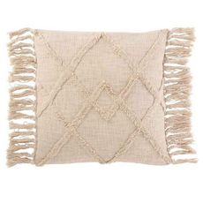 Coussin Déco Franges Losange 50x50cm Crème