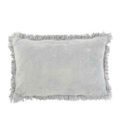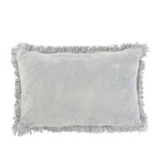 Coussin Déco Franges Velours 35x55cm Gris Bleu