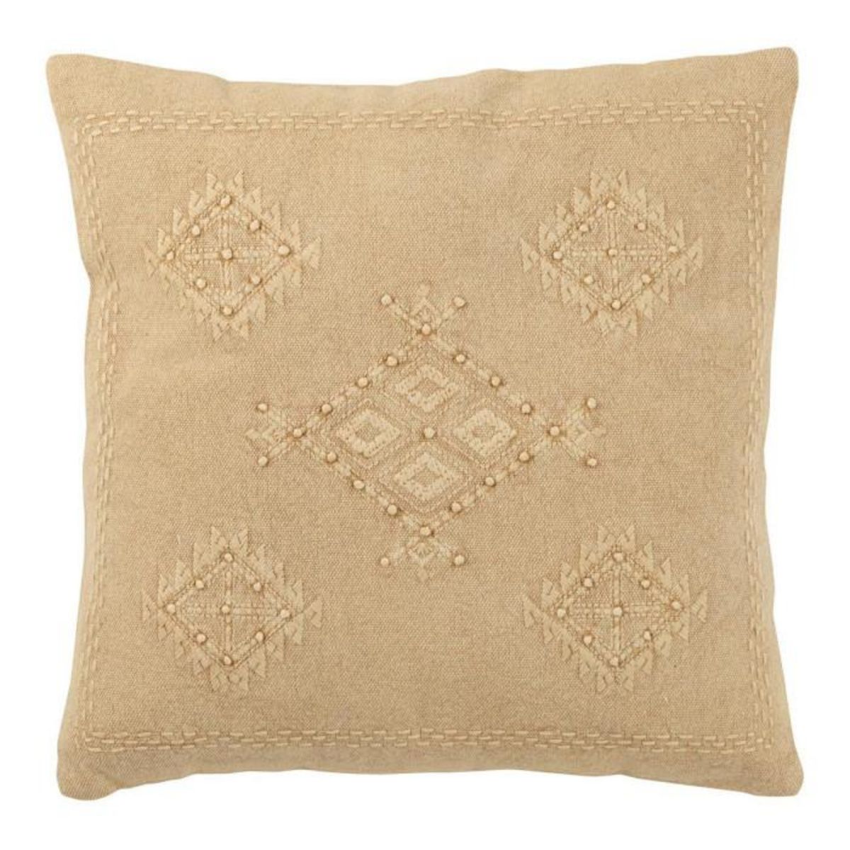 Informations Techniques : Dimensions : L. 45 x l. 45 x H. 15 cm Matière : 100% Coton Spécificités : Déco & Pratique Coussin avec Broderie Forme Carrée Coussin Amovible Lavage à la main Vendu à l'unité Poids : 0,59 kg Couleur : Beige