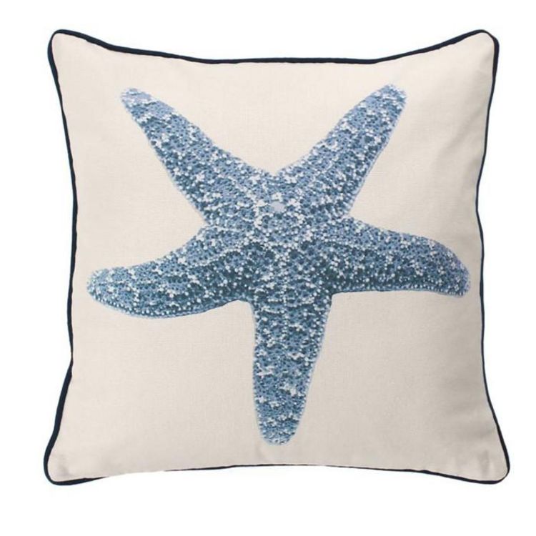 Informations Techniques : Dimensions : L. 40 x l. 40 cm Matières : 80% Coton recyclé & 20% Polyester Garnissage : 100% Polyester Spécificités : Pratique & Moelleux Coussin déco carré Recto imprimé étoile de mer Verso uni Déhoussable avec zip Avec passepoil Couleur : Écru & Bleu