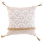 Informations Techniques : Dimensions : L. 40 x l. 40 cm Matières : Coton Spécificités : Doux & Tendance Coussin Déco Forme Carrée Avec Pompons A Motifs Déhoussable Poids : 0,49 kg Couleur : Beige & Blanc