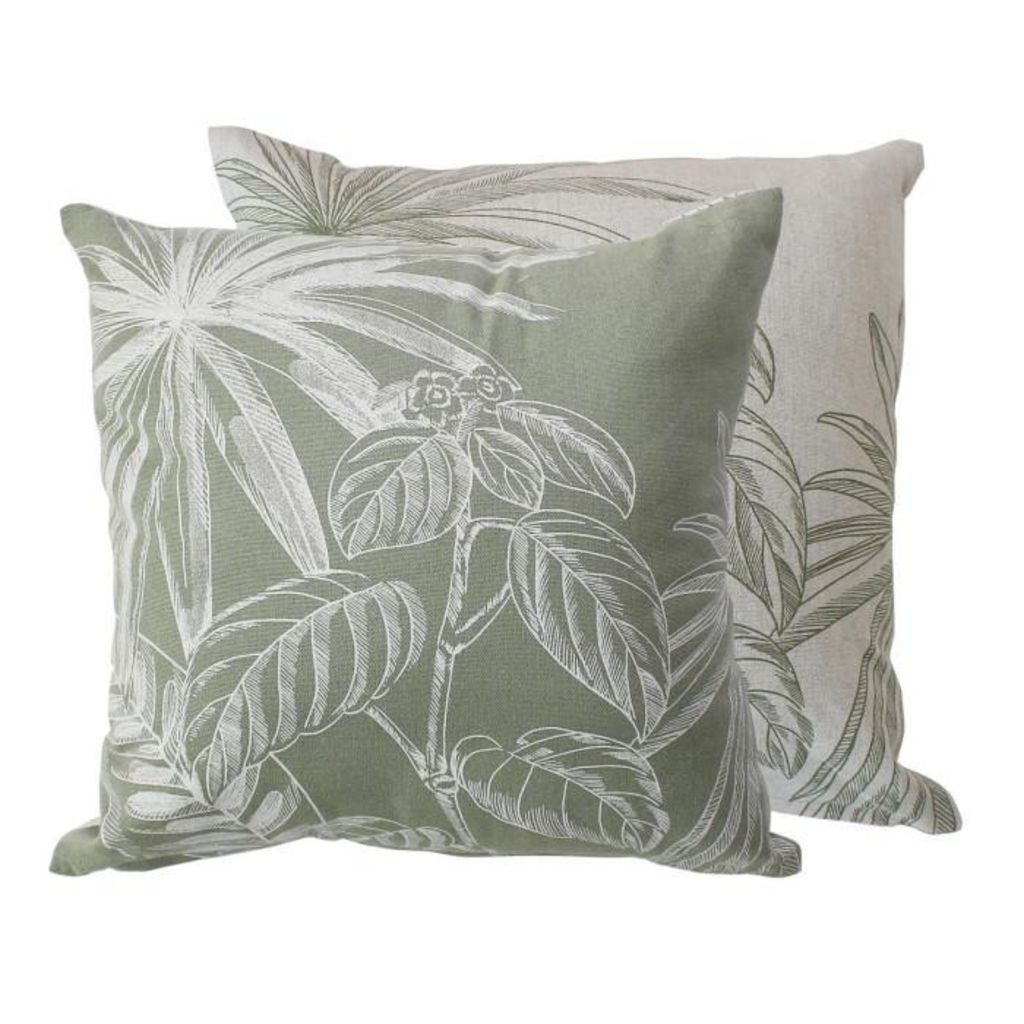 Informations Techniques : Dimensions : L. 40 x l. 40 cm Matières : 80% Coton Recyclé & 20% Polyester Garnissage : 100% Polyester Spécificités : Pratique & Confort Coussin déco carré Déhoussable avec zip Tissu chambray Motifs feuilles tropicales Imprimé recto/verso en négatif Couleur : Vert Olive &