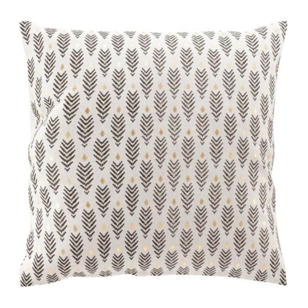 Informations Techniques : Dimensions : L. 45 x l. 45 cm Matières : Extérieur : 100% Coton Intérieur : 100% Polyester Spécificités : Déco & Fantaisie Coussin carré Motif imprimé Détails dorés Déhoussable Label Oeko-Tex Entretien : Lavage à la main Pas de séchage en machine Repassage à 110° Poids : 0