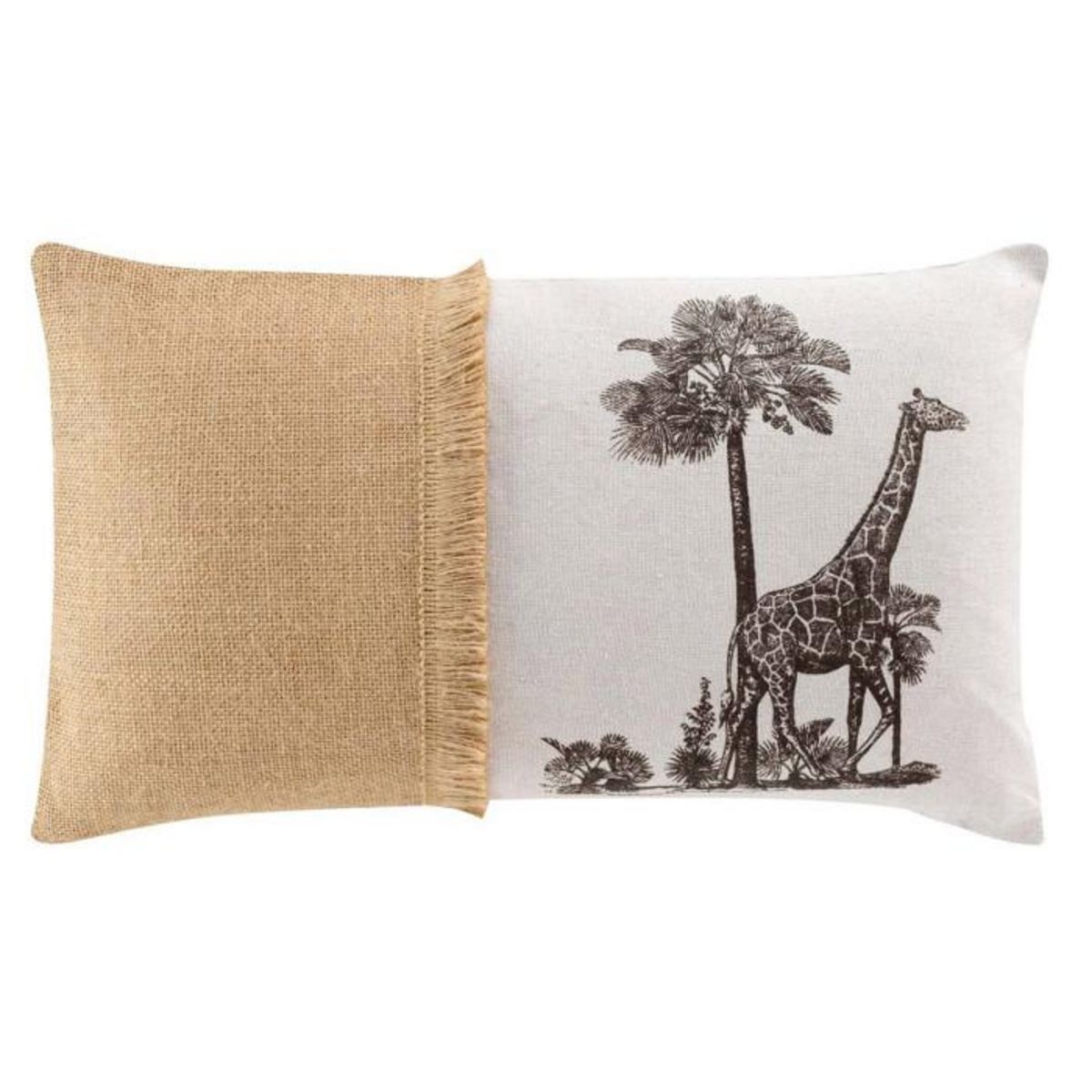 Informations Techniques : Dimensions : L. 50 x l. 30 cm Matières : 71% Polyester, 18% Coton & 11% Viscose Spécificités : Déco & Original Coussin rectangulaire Imprimé savane Bande déco en jute Déhoussable Entretien : Lavage à la main Pas de séchage en machine Repassage à 110° Poids : 0,35 kg Couleur