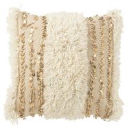 Coussin Déco Lignes de Sequin 45x45cm Crème & Or