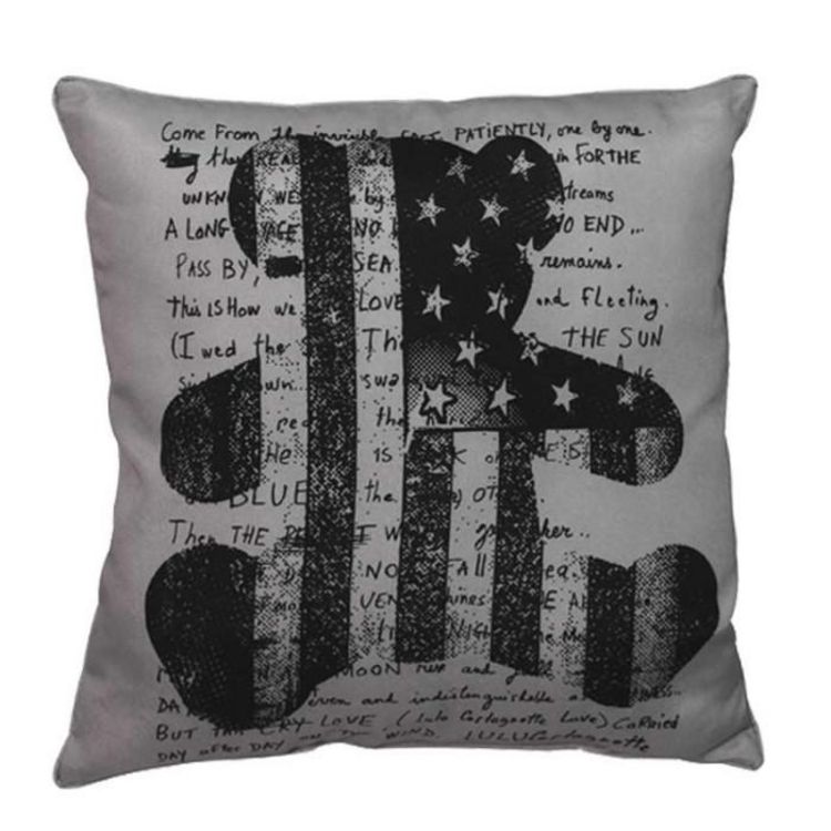 Coussin Déco Lulu Flag Bear 40x40cm Gris