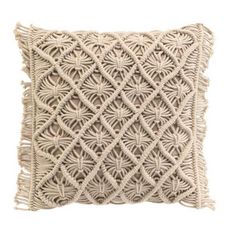 Informations Techniques : Dimensions : L. 40 x l. 40 cm Matière : 100% Coton Spécificités : Déco & Utile Coussin carré Design macramé Déhoussable Label Oeko-Tex Conseil d'entretien : Lavage à la main Pas de séchage en machine Pas de repassage Poids : 0,71 kg Couleur : Naturel