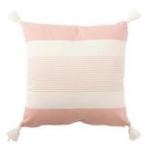 Informations Techniques : Dimensions : L. 50 x l. 50 x H. 9 cm Matières : 90% Polyester & 10% Coton Spécificités : Tendance & Pratique Coussin Déco Forme Carrée Avec Pompons Motif Ligné Housse Amovible Lavable en Machine à 30° Poids : 0,652 kg Couleur : Blanc & Rose