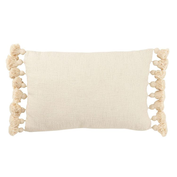 Coussin Déco Pompons Bella 40x60cm Beige