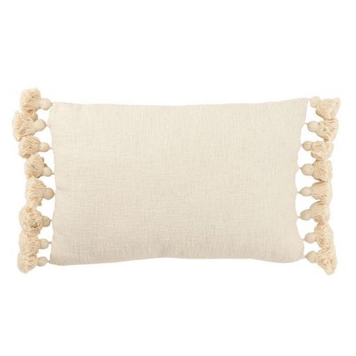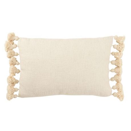 Informations Techniques : Dimensions : L. 60 x l. 40 x H. 10 cm Matières : 70% Coton & 30% Polyester Spécificités : Déco & Pratique Coussin avec Pompons Style Bohème Coussin Déhoussable Forme Rectangulaire Lavage à la main Poids : 0,78 kg Couleur : Beige