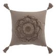 Coussin Déco Pompons Bord Floches 45x45cm Taupe
