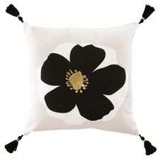 Informations Techniques : Dimensions : L. 45 x l. 45 cm Matières : Extérieur : 100% Coton Intérieur : 100% Polyester Spécificités : Déco & Élégant Coussin carré Avec pompons Motif fleur Déhoussable Label Okeo-Tex Entretien : Lavage à la main Pas de séchage en machine Repassage à 110° Poids : 0,5 kg