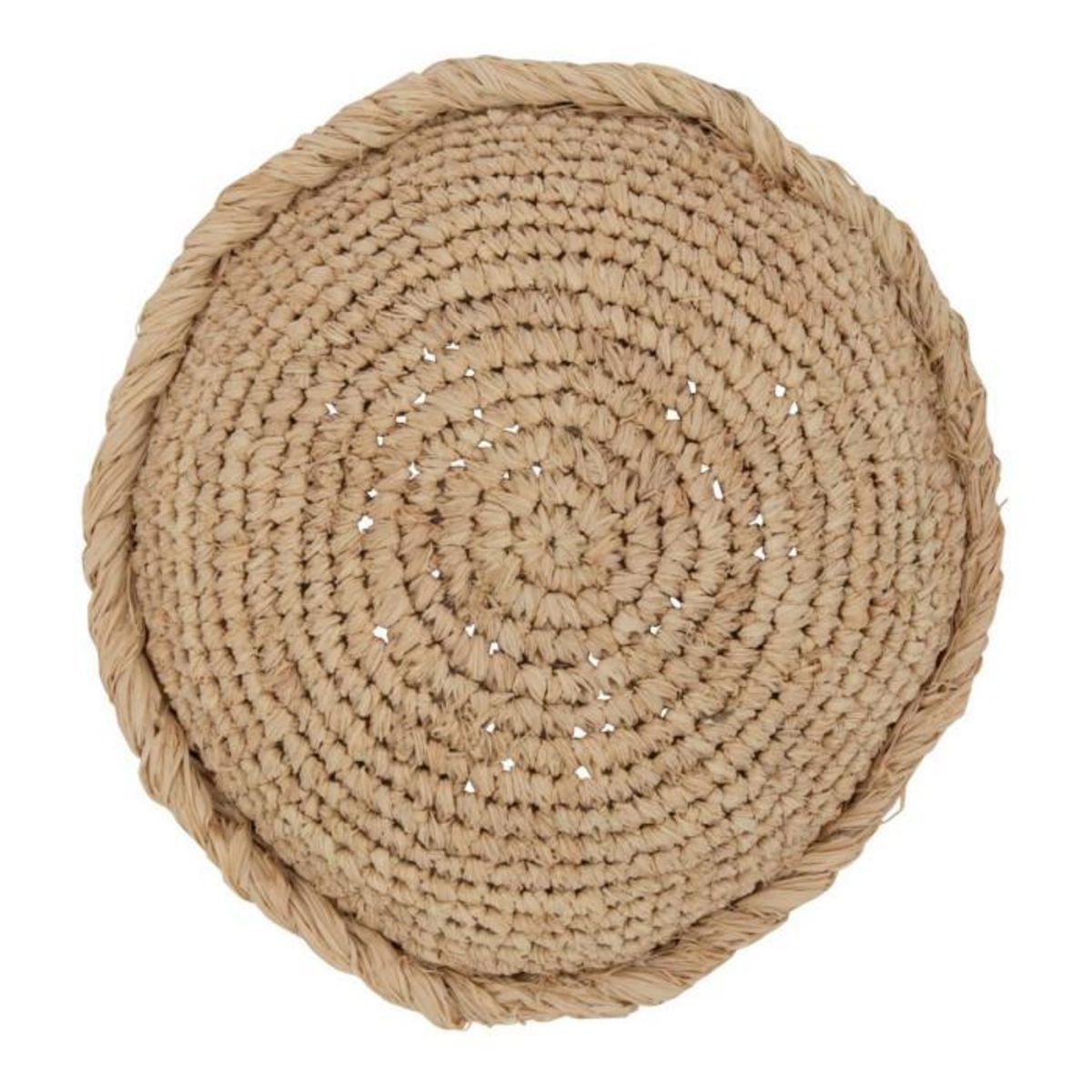 Informations Techniques : Dimensions : D. 36 x H. 26 cm Matière : Raphia & Tissu Spécificités : Tendance & Utile Coussin déco Forme ronde Poids : 0,5 kg Couleur : Naturel
