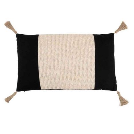 Coussin Déco Tissage 30x50cm Noir & Beige