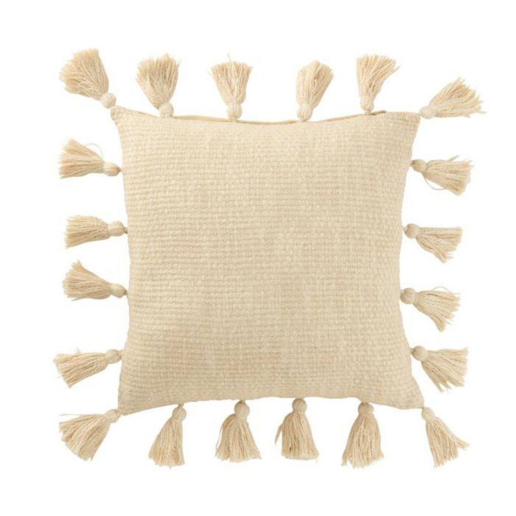 Informations Techniques : Dimensions : L. 45 x l. 45 x H. 15 cm Matière : 100% Coton Spécificités : Pratique & Tendance Coussin uni tissé Avec pompons décoratifs Déhoussable Forme carrée Poids : 0,84 kg Couleur : Beige