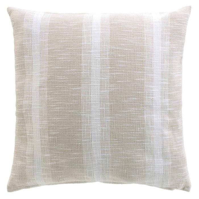 Informations Techniques : Dimensions : L. 60 x l. 60 cm Matières : 68% Coton, 28% Polyester & 4% Viscose Spécificités : Déco & Utile Coussin carré Motifs rayures Déhoussable Label Oeko-Tex Conseil d'entretien : Lavage à la main Pas de séchage en machine Repassage à 110° Poids : 0,7 kg Couleur : Beig