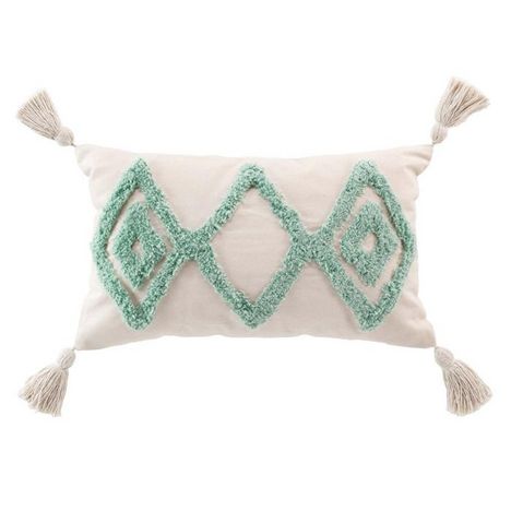 Informations Techniques : Dimensions : L. 50 x l. 30 cm Matières : 80% Coton, 17% Polyester & 3% Fibres Spécificités : Déco & Utile Coussin rectangulaire Avec pompons Motifs losanges tuftés Déhoussable Entretien : Lavage à la main Pas de séchage en machine Repassage à 110° Poids : 0,48 kg Couleur :