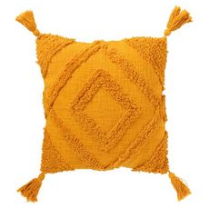 Informations Techniques : Dimensions : L. 50 x l. 50 x H. 15 cm Matière : 100% Coton Spécificités : Déco & Coloré Coussin carré tufté Avec pompons Motifs losanges Poids : 0,89 kg Couleur : Ocre