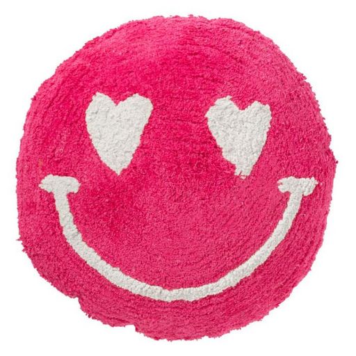 Informations Techniques : Dimensions : D. 45 x H. 15 cm Matière : 100% Coton Spécificités : Déco & Coloré Coussin tufté rond Motif smiley Poids : 0,5 kg Couleur : Rose