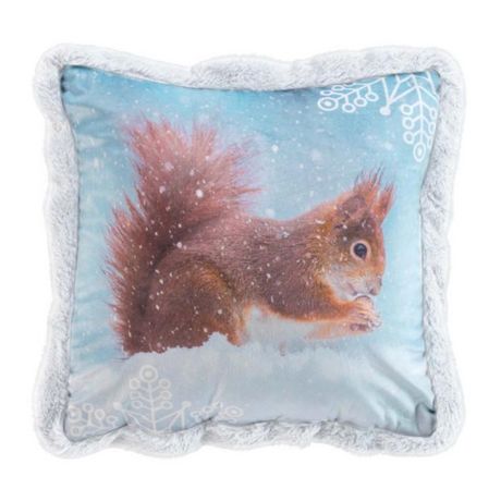 Coussin Déco Velours Écureuil 40x40cm Bleu