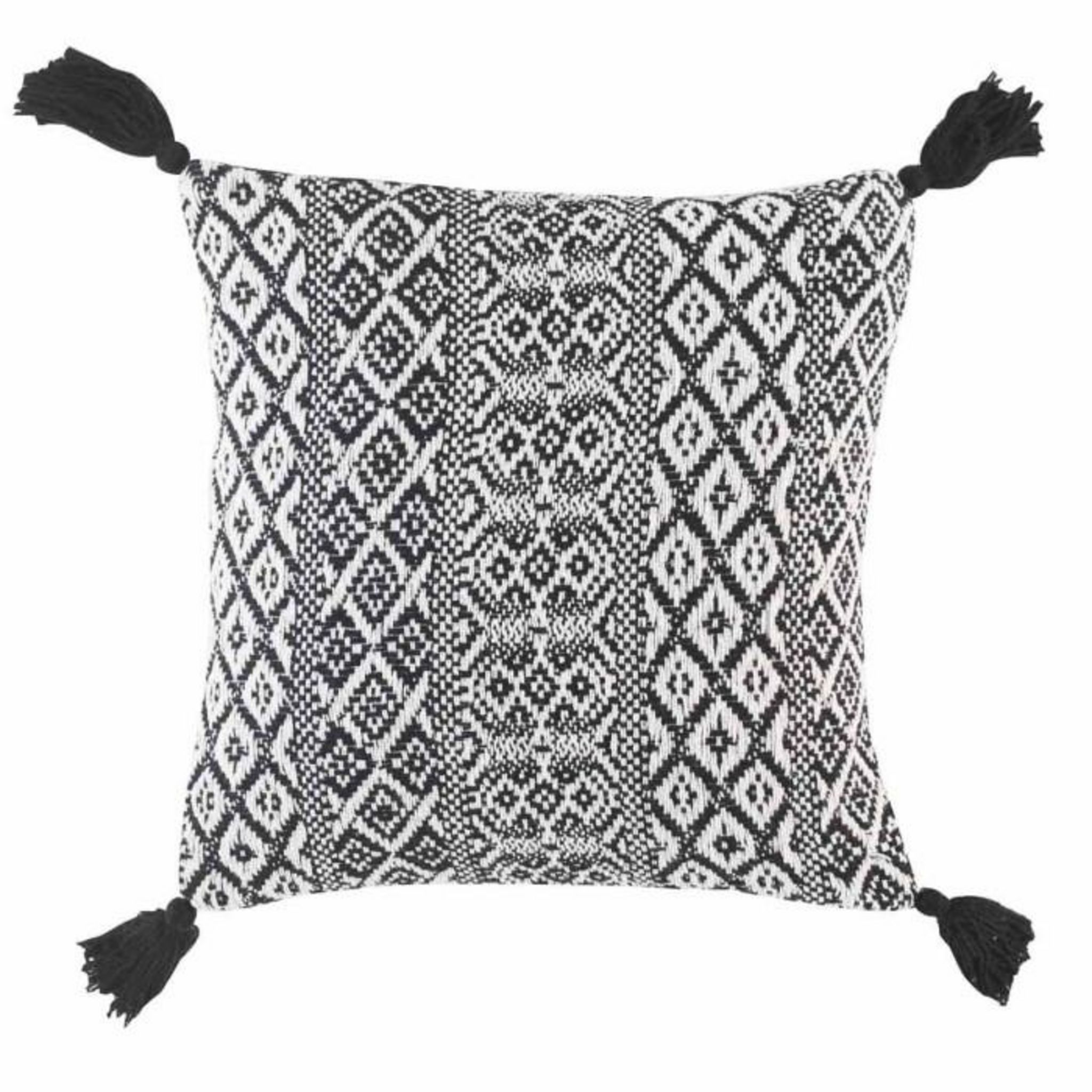 Informations Techniques : Dimensions : L. 40 x l. 40 cm Matières : Coton & Polyester Spécificités : Coussin déhoussable Confortable & coquette Facile d'entretien Motifs géométriques Poids : 0,490 kg Couleur : Noir & Blanc