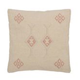 Informations Techniques : Dimensions : L. 45 x l. 45 x H. 15 cm Matières : 60% Coton & 40 Polyester Spécificités : Pratique & Tendance Coussin déco Motif diamants et flèches Déhoussable Lavage à sec Forme carrée Poids : 0,67 kg Couleur : Crème & Rose