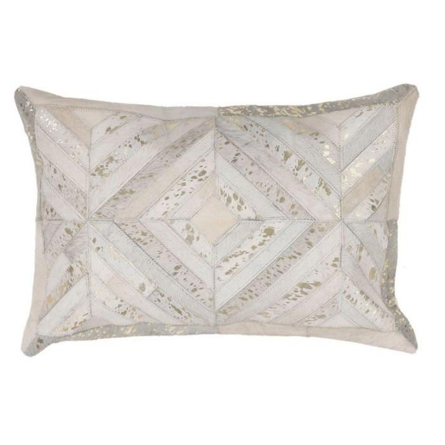 Coussin Design en Cuir Spark 40x60cm Ivoire & Or