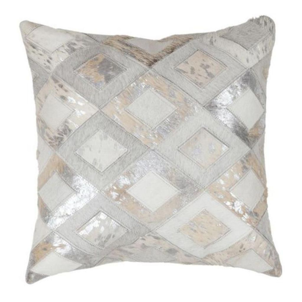 Coussin Design en Cuir Spark 45x45cm Gris & Argent