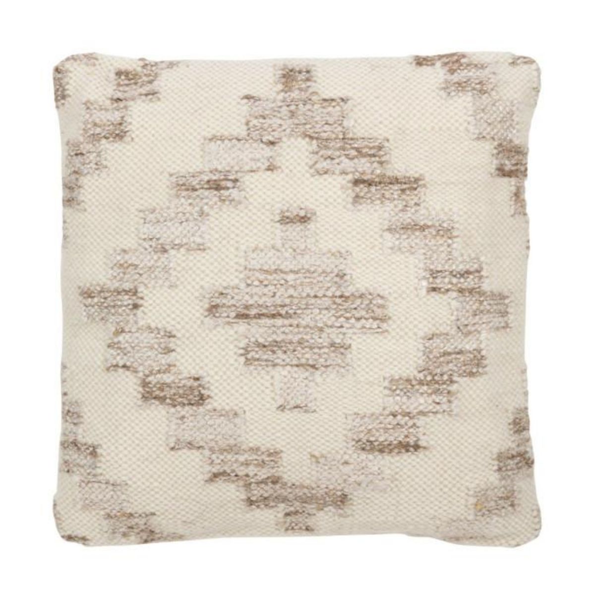Informations Techniques : Dimensions : L. 45 x l. 45 x H. 12 cm Matières : 80% Laine, 10% Coton & 10% Polyester Spécificités : Pratique & Confortable Coussin déco Design éthnique Déhoussable Forme carrée Poids : 0,69 kg Couleur : Beige