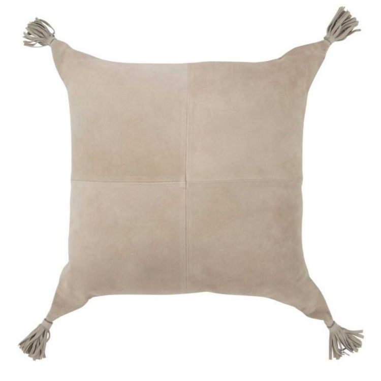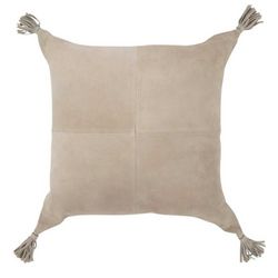 Coussin Pompons en Cuir Coleman 45x45cm Gris