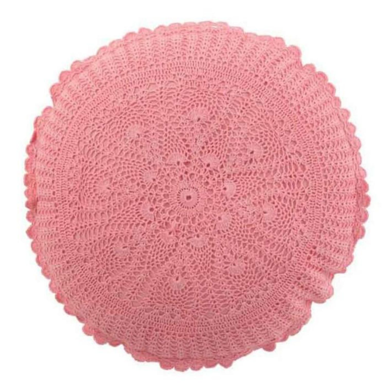 Coussin Rond Déco Dentelle 40cm Rose