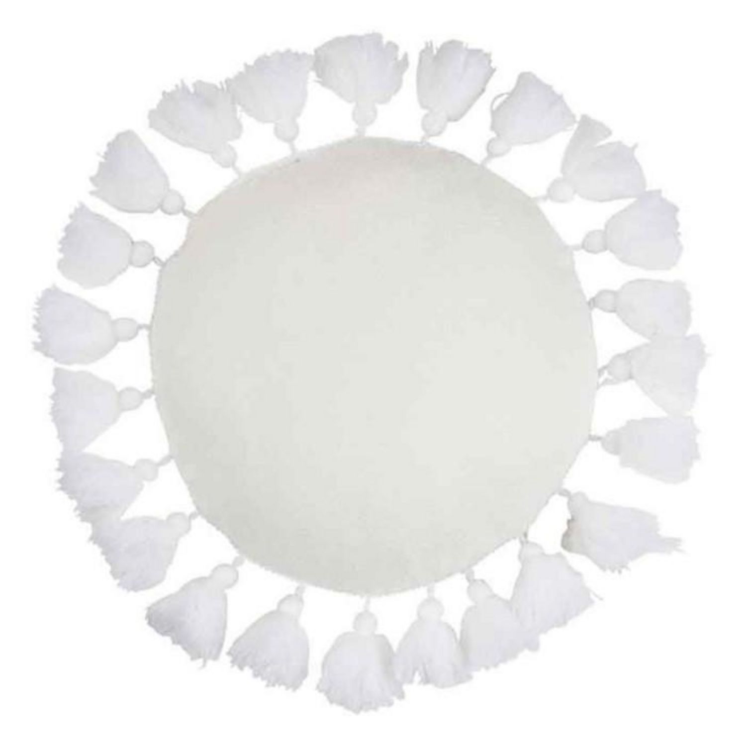 Informations Techniques : Dimensions : D. 45 x H. 14 cm Matière : Polyester Spécificités : Pratique & Utile Coussin Déco Forme Ronde Avec Pompons Poids : 0,477 kg Couleur : Blanc