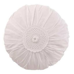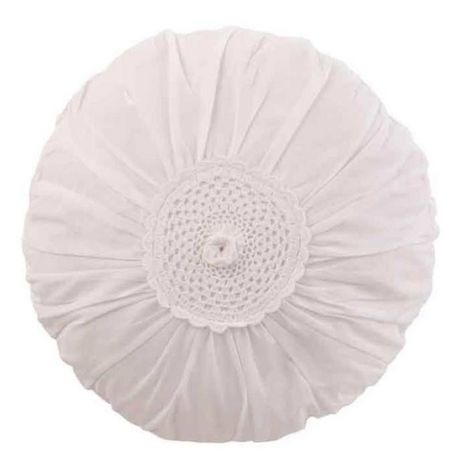 Coussin Rond en Coton Dentelle 40cm Blanc