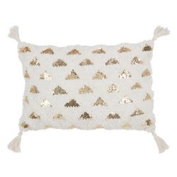 Coussin Tufté Floches 40x60cm Blanc & Or