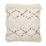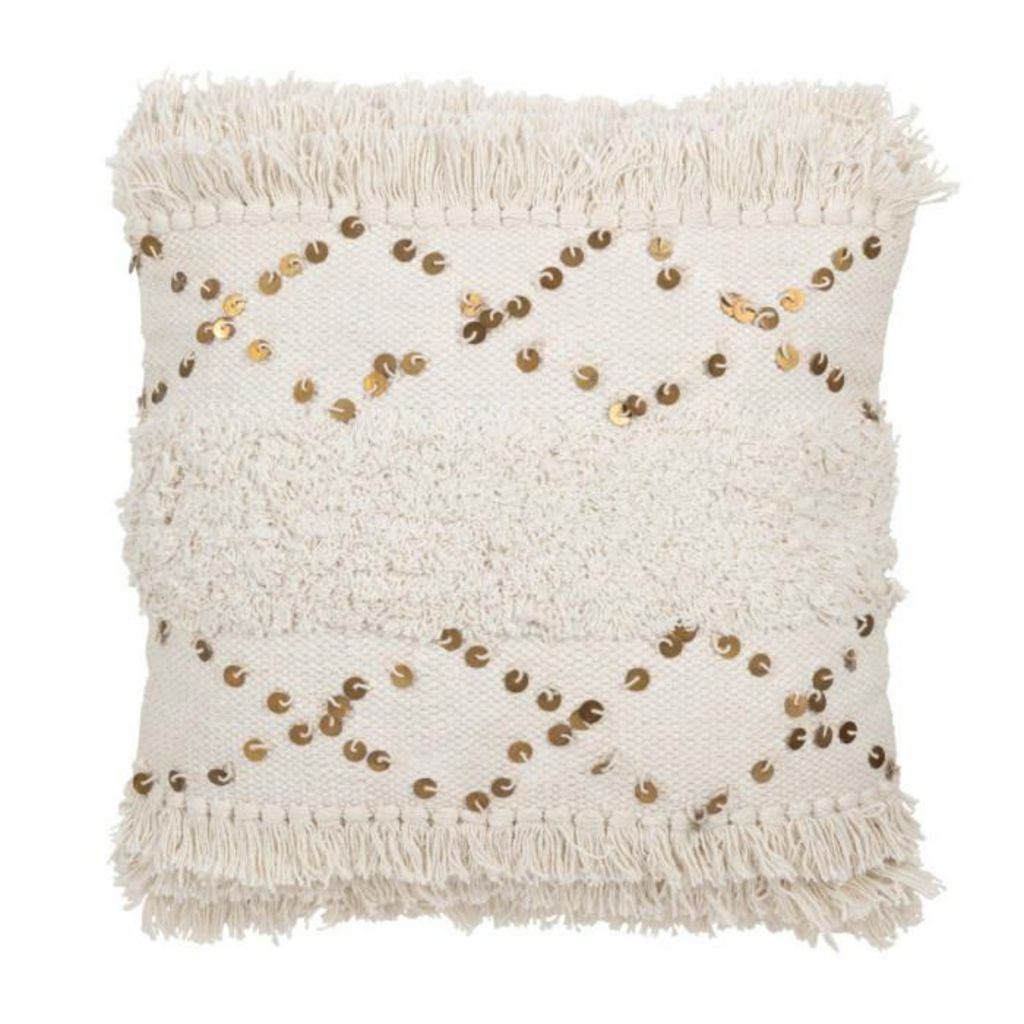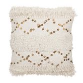 Coussin Tufté Franges & Sequins Dubai 45x45cm Blanc