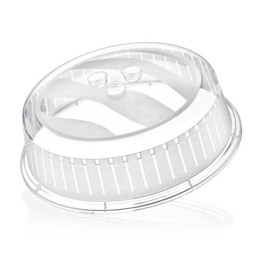 Informations Techniques : Dimensions : D. 26 x H. 9,5 cm Matière : Plastique Spécificités : Pratique & Utile Couvercle Micro Ondes Forme Ronde Accrochable Couleur : Transparent