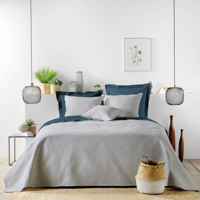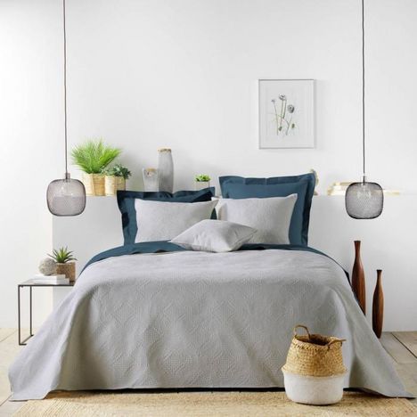 Informations Techniques : Dimensions : Couvre-lit : L. 240 x l. 220 cm Housse de coussin : L. 60 x l. 60 cm Matière : 100% Polyester Spécificités : Utile & Élégant Couvre-lit 2 personnes Avec 2 housses de coussin Motif ton sur ton Tissu microfibre Poids : 1,96 kg Couleur : Gris