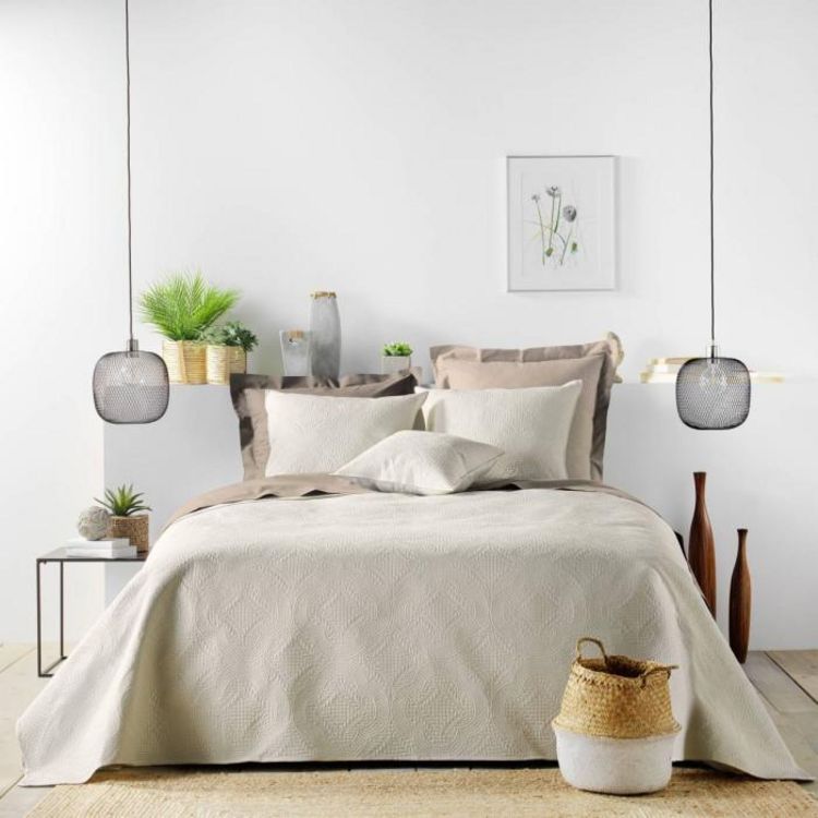 Couvre-Lit & 2 Housses de Coussin Romane 220x240cm Naturel