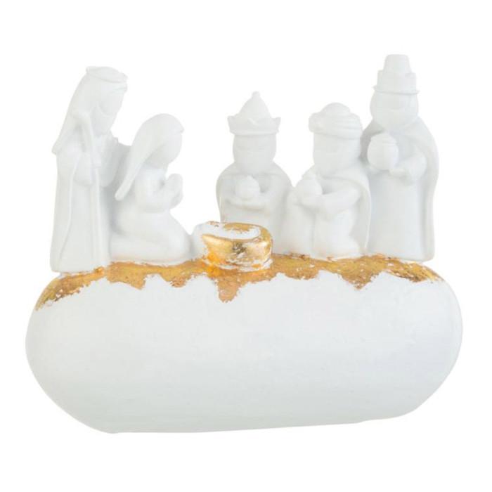 Informations Techniques : Dimensions : L. 19 x l. 8,5 x H. 15,5 cm Matières : 55% Pierre & 45% Polyrésine Spécificités : Chic & Déco Crèche de noël Avec 3 rois mages Poids : 0,4 kg Couleur : Blanc & Or