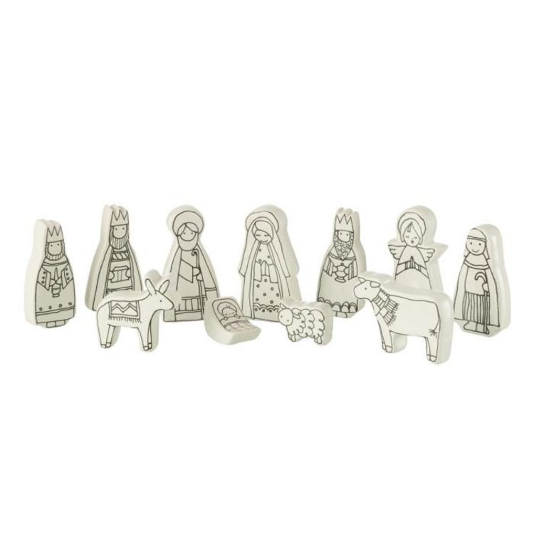 Informations Techniques : Dimensions : L. 5 x l. 2 x H. 9 cm Matière : 100% Dolomite Spécificités : Festive & Moderne Crèche de Noël 11 santons bicolores Poids : 0,34 kg Couleur : Blanc & Noir