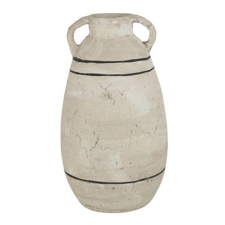 Informations Techniques : Dimensions : L. 22 x l. 22 x H. 40 cm Matière : Terre cuite Spécificités : Pratique & Esthétique Cruche déco Avec anses Design lignes Forme ronde Vendu à l'unité Poids : 5,39 kg Couleur : Beige