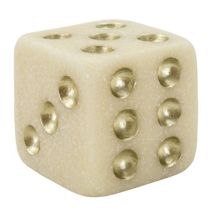 Dé Déco en Résine Quarzy 8cm Blanc & Or