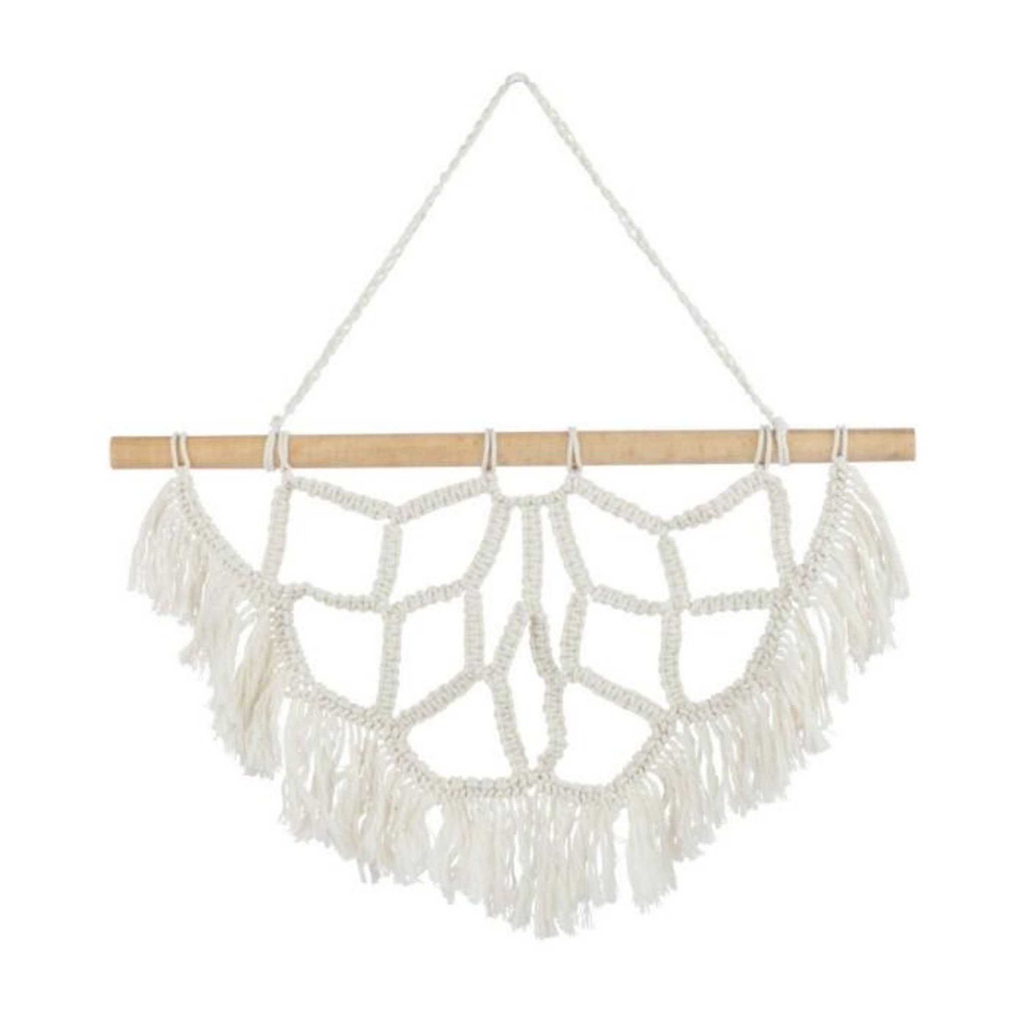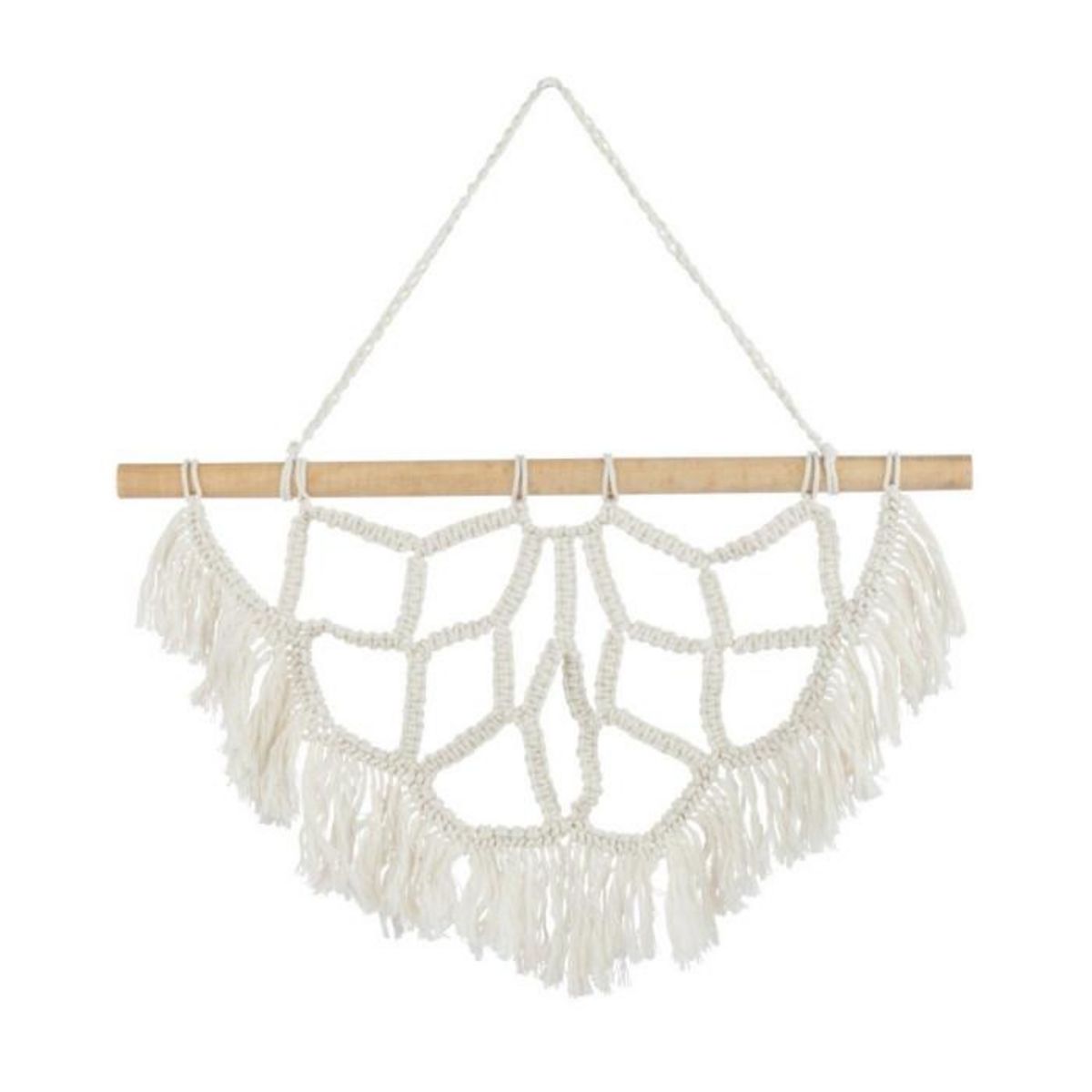Informations Techniques : Dimensions : L. 60 x l. 3 x H. 35 cm Matières : Bois d'Albasie & Coton Spécificités : Déco murale A suspendre Motif demi mandala Poids : 0,4 kg Couleur : Blanc