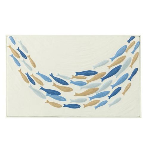 Informations Techniques : Dimensions : L. 60,8 x l. 3 x H. 36,8 cm Matière : 100% Métal Spécificités : Solide & Originale Déco murale rectangulaire Motif banc de poisson en relief Poids : 1,07 kg Couleur : Multicolore