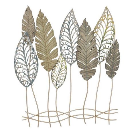 Informations Techniques : Dimensions : L. 75 x l. 2,5 x H. 87 cm Matières : Métal & MDF Spécificités : Originale & Robuste Déco murale Design feuilles Poids : 1,66 kg Couleur : Argent & Or